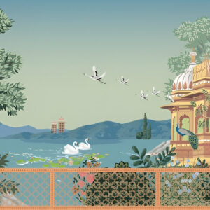 Traditional-mughal-garden-illustration-dome-wallpaper-